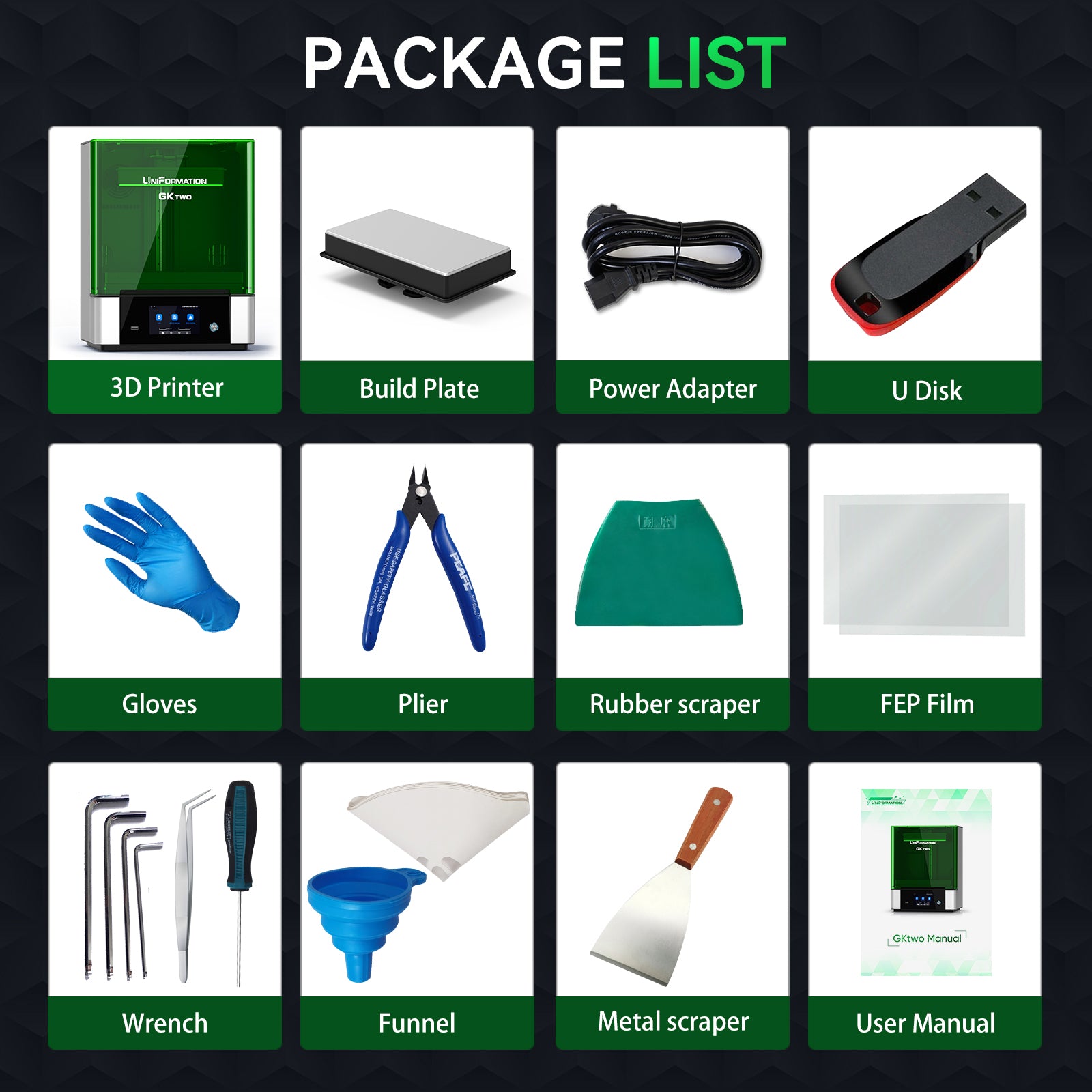 UniFormation GKtwo 3D resin printer has a larger build volume than most resin printers currently on the market at 10.3'' (228*128*245mm).