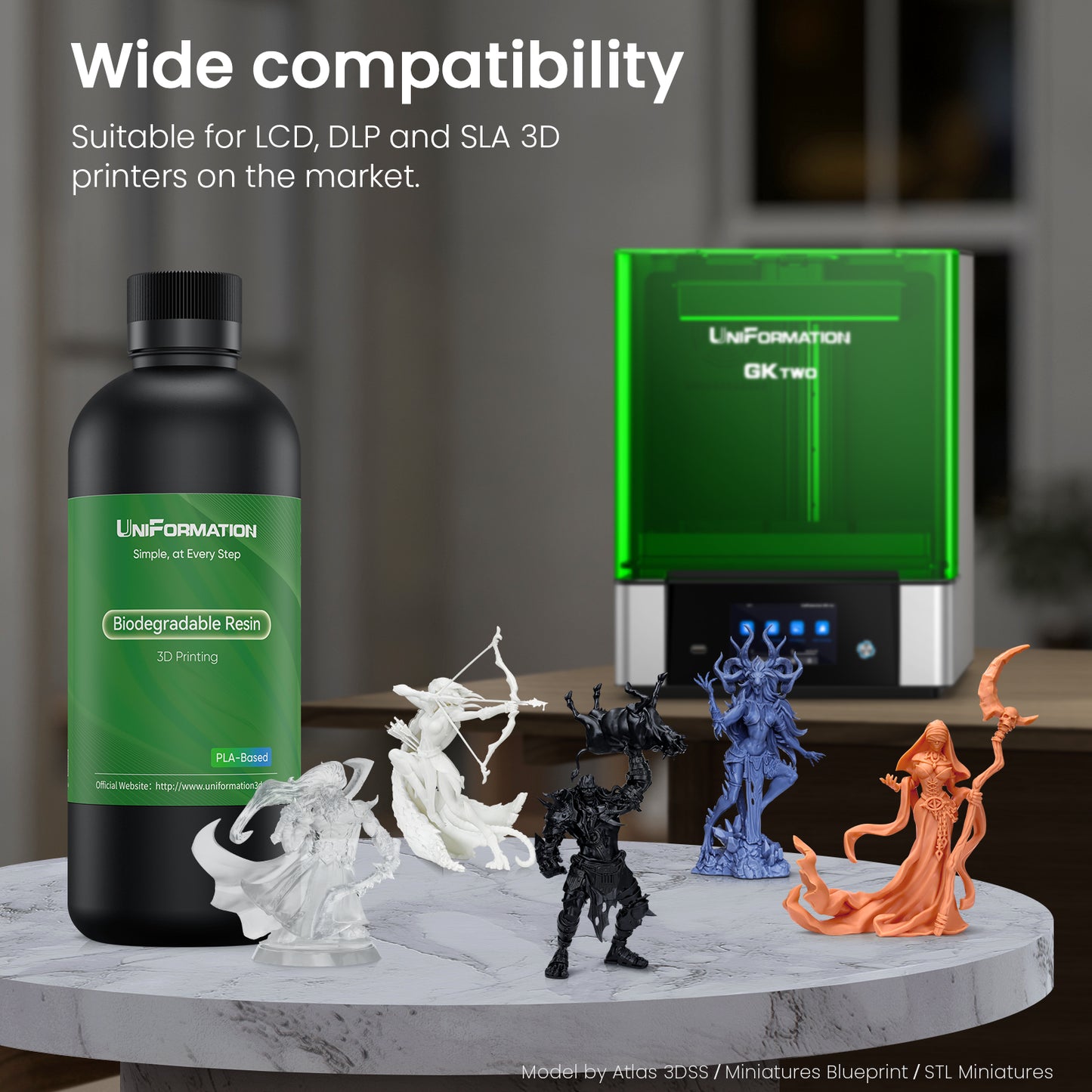 【ECO-FRIENDLY RESIN】UniFormation resin obtained from renewable sources, which contain biodegradable PLA (Polylactic acid), is more environmentally friendly compared with the petroleum-derived resins on the market. Bio-based resin is being developed as a choice for an efficient and low waste production method.